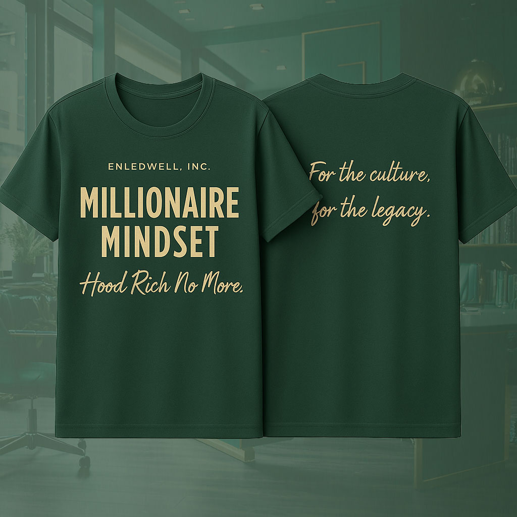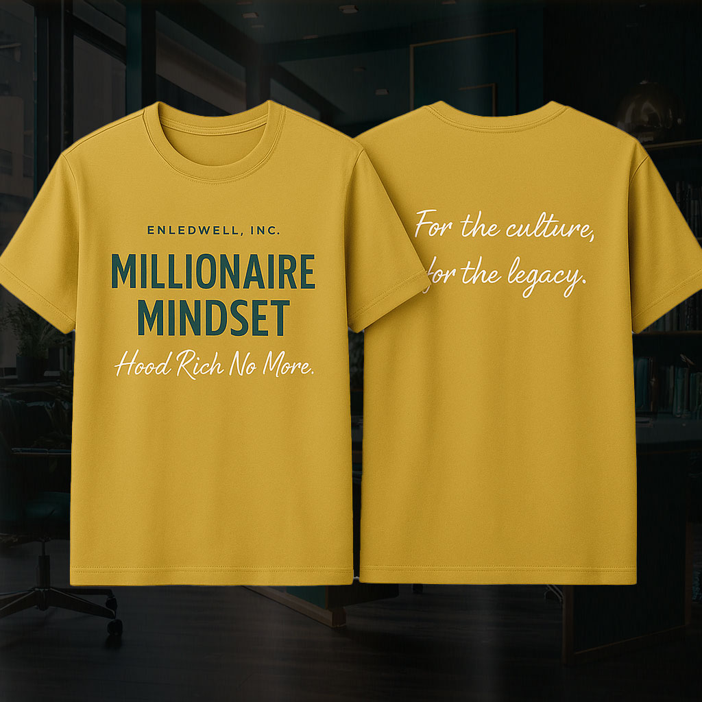 Shirt – Millionaire Mindset, Hood Rich No More.